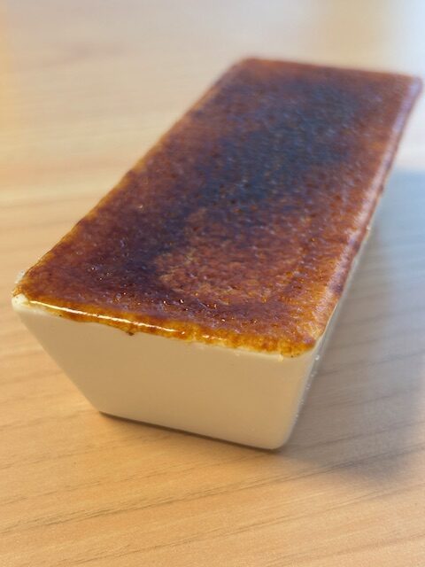 自由が丘で行列が絶えない人気パティスリーですね。ご存じの方も多いお店だと思いますが、それだけに「なぜこのアイキャッチ画像?」と違和感を持たれた方もいらっしゃるかもしれません。ショーケースに並ぶケーキは、どれも丁寧につくられた華やかな色や形を纏い、「どれにしよう」と迷いに迷う幸せな悩みをかきたてます。その中で、端のほうで目立たずひっそりと並ぶこのクレーム モル。クレームブリュレがこの写真です。