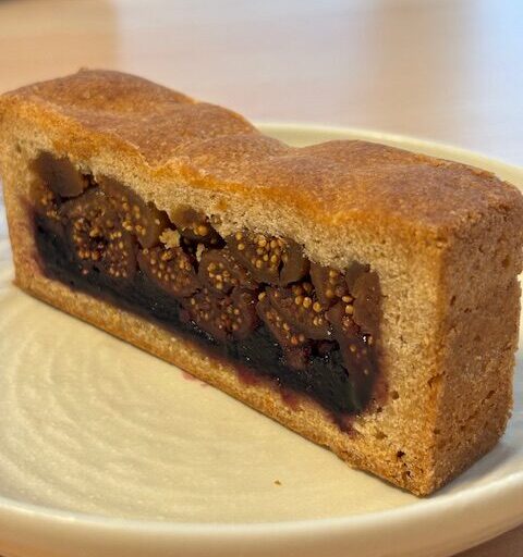 けっこうずっしりとしていますが、お味は濃厚ながら重い感じは全くありません。イチジクのコンポートは洋酒を使ったような風味があります。口いっぱいに広がるイチジクのねっとりとした甘さと種のプチプチした食感がいい組み合わせ。そこにカシスのしっかりした酸味が加わるので、しっかり甘いのにくどくない絶妙なバランスになっています。また、はじめは、クッキー生地が厚いかな、と思ったのですが、コンポートの濃厚さを受け止めるにはちょうどよい具合です。